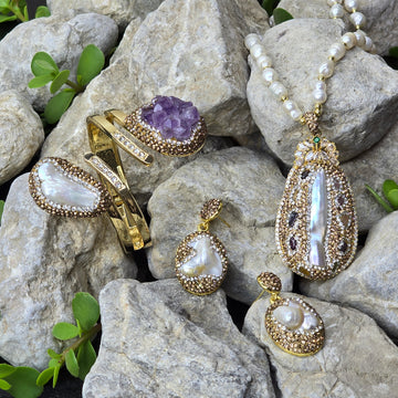 Raw. Radiant. Unforgettable. The Desert Mirage Collection is where earthy energy meets glam magic — featuring rock-shaped natural stones and perfectly imperfect freshwater pearls, all kissed with shimmering Austrian crystals. It’s giving mystical, desert goddess vibes. 💫 Ready to glow different?