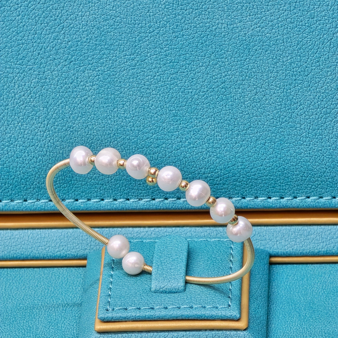 Turquoise & Freshwater Pearl Bangle, a stunning blend of nature’s raw beauty and refined sophistication....