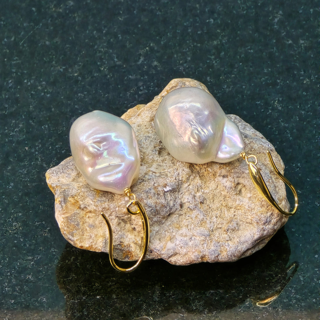 Naturally Unique, Effortlessly Elegant ✨ These stunning polished white baroque pearl dangle earrings highlight the...