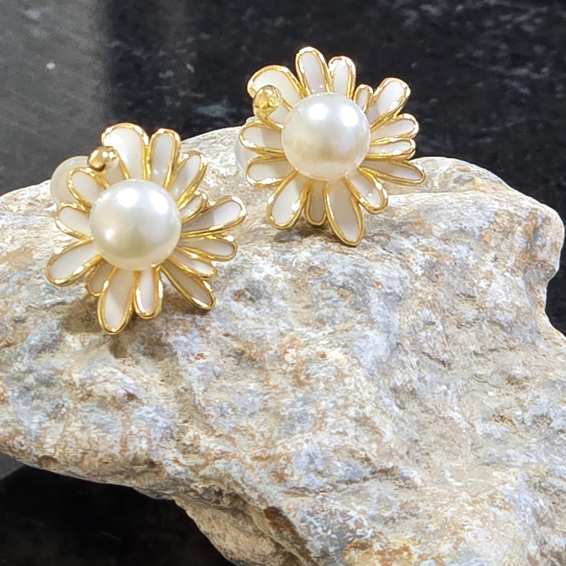 Charming daisy elegance in gold-plated stainless steel ✨ A high-luster white freshwater pearl blooms at...