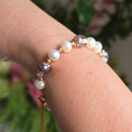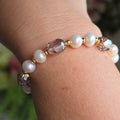 Adjustable White Pearl bracelet with Austrian crystal beads