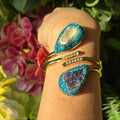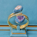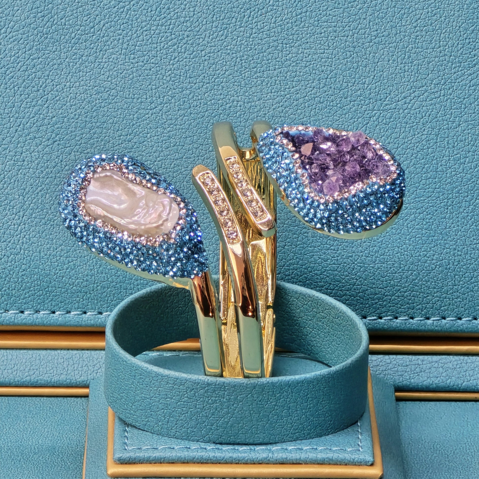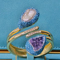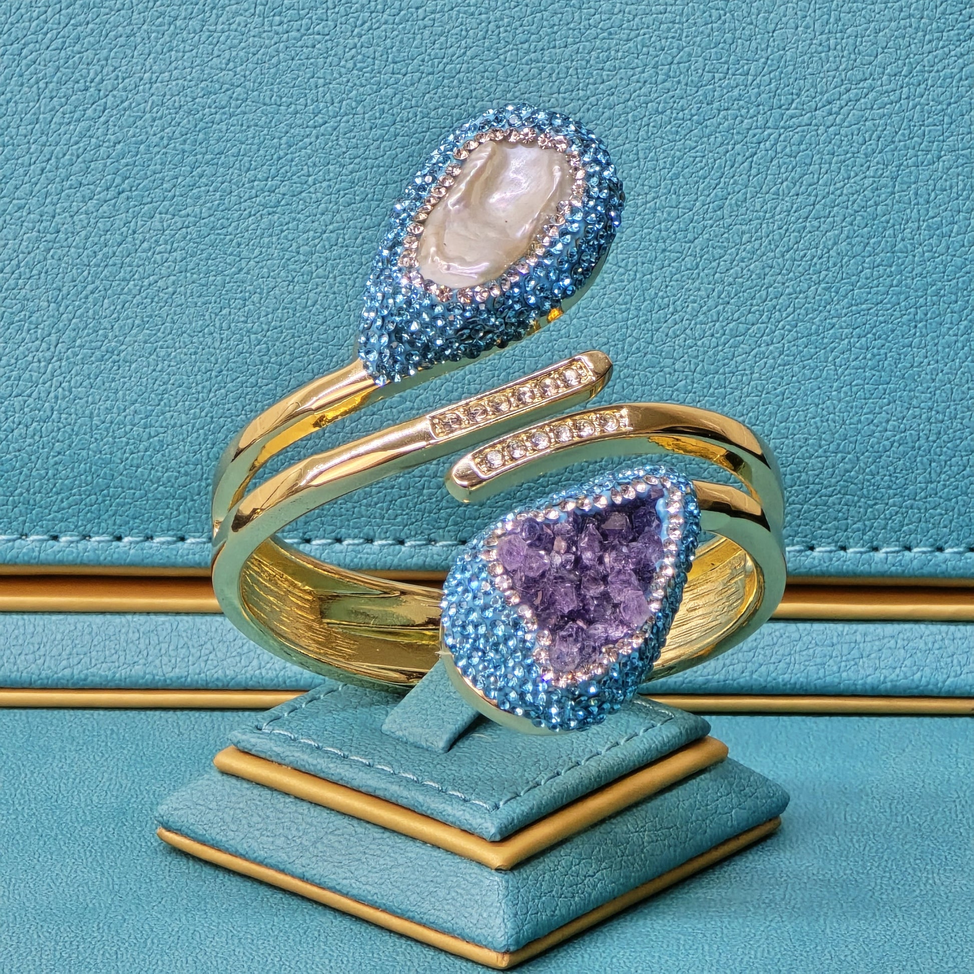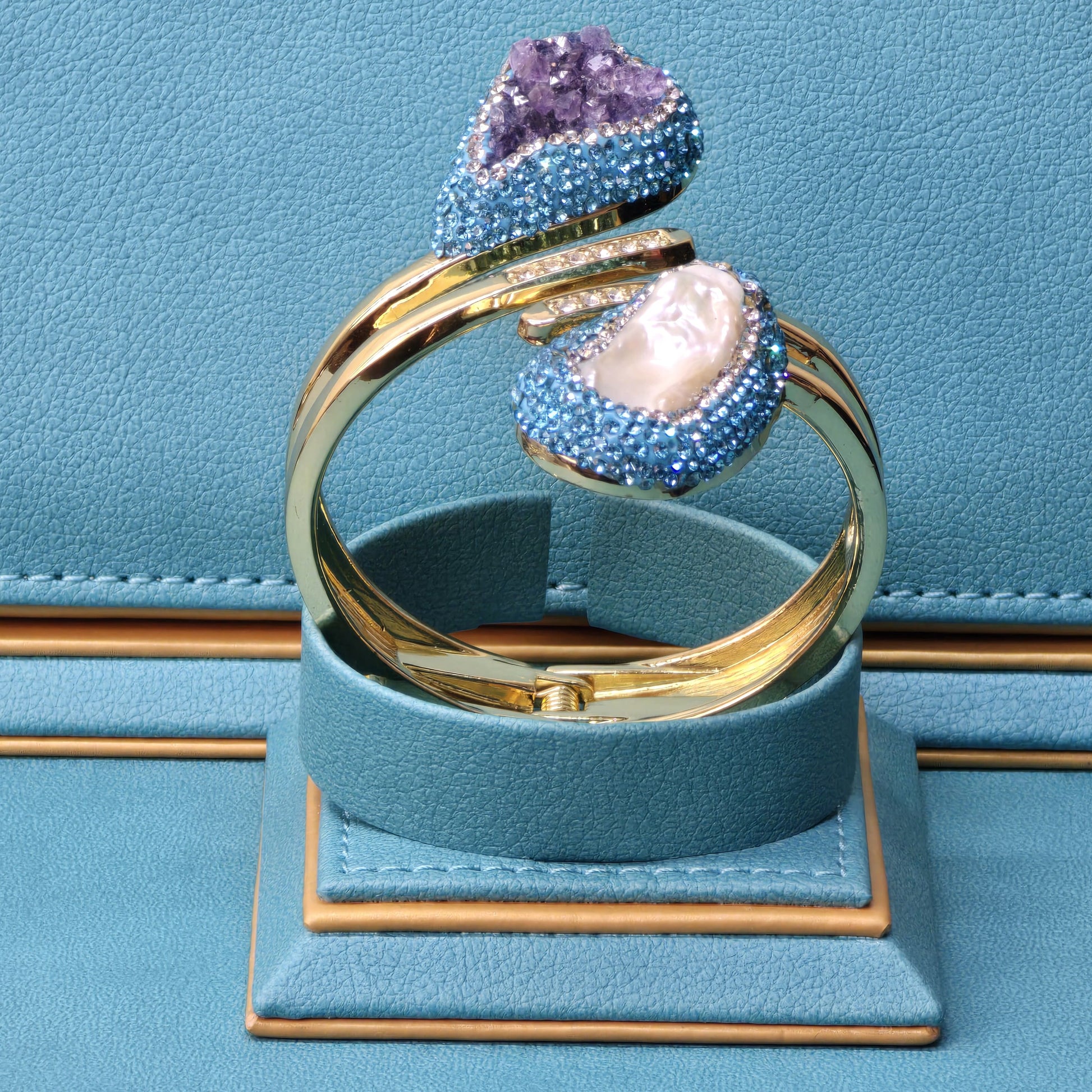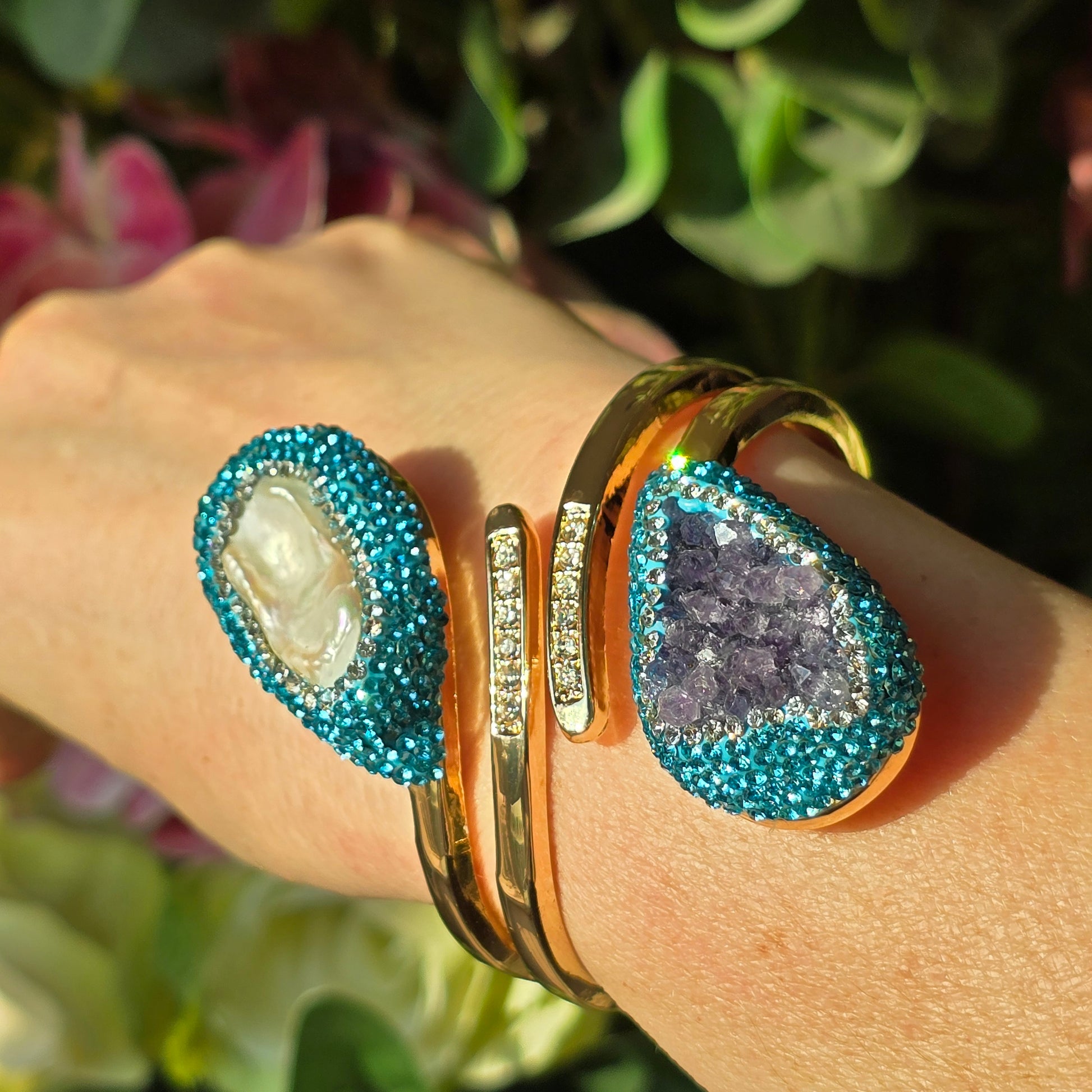 Baroque Pearl and Amethyst Bangle with Light Blue Austrian Crystals