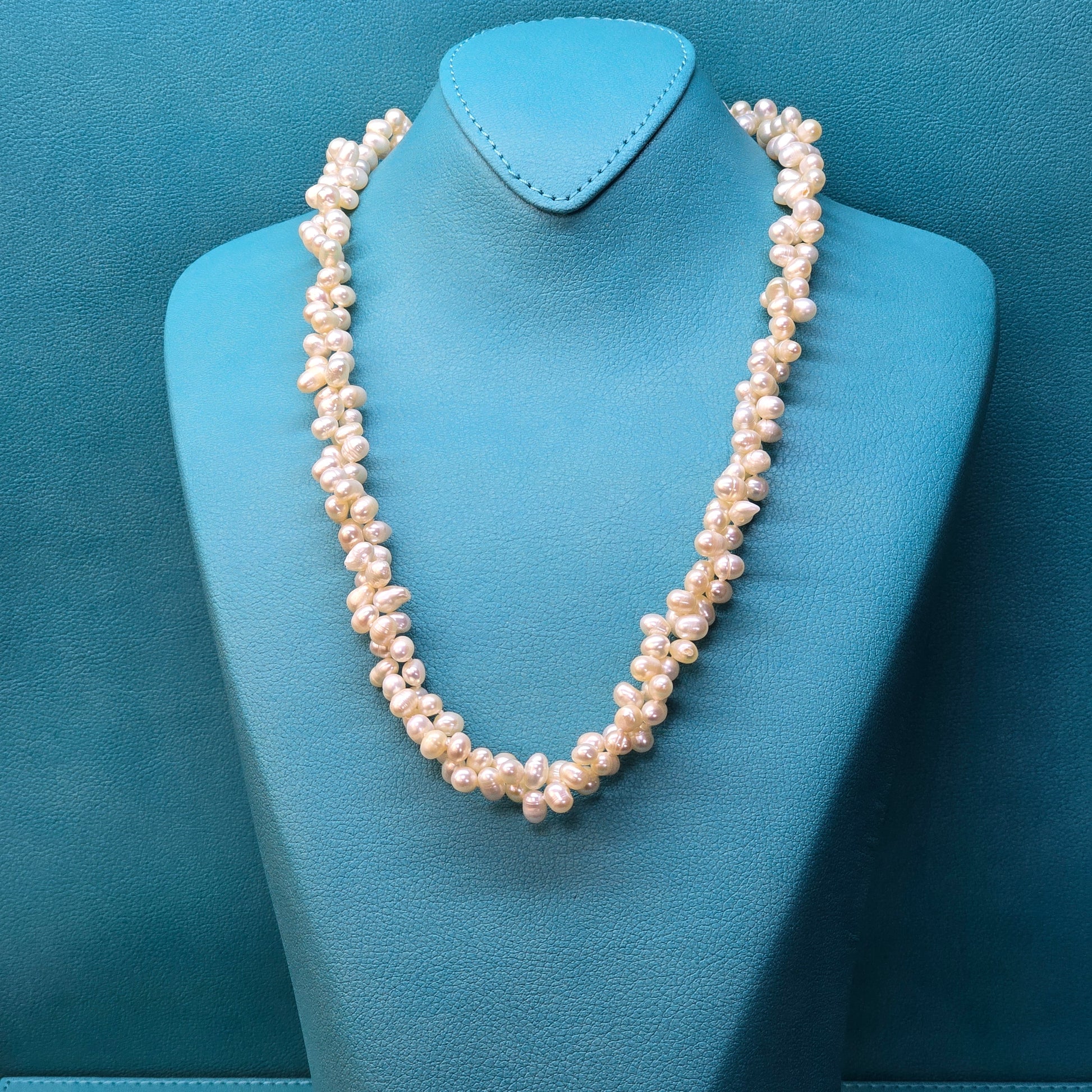 Indulge in luxurious sophistication with this stunning high-luster freshwater pearl necklace, designed for those who appreciate timeless beauty with a bold, modern touch. Featuring oval-shaped white freshwater pearls, this piece exudes natural radiance and elegance.