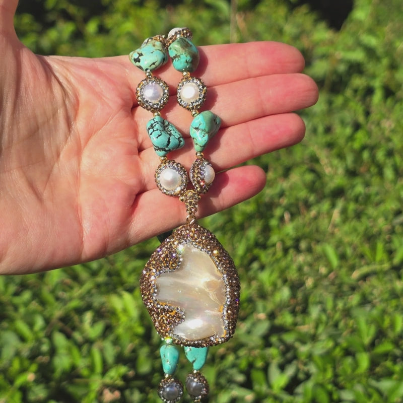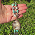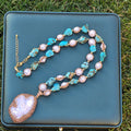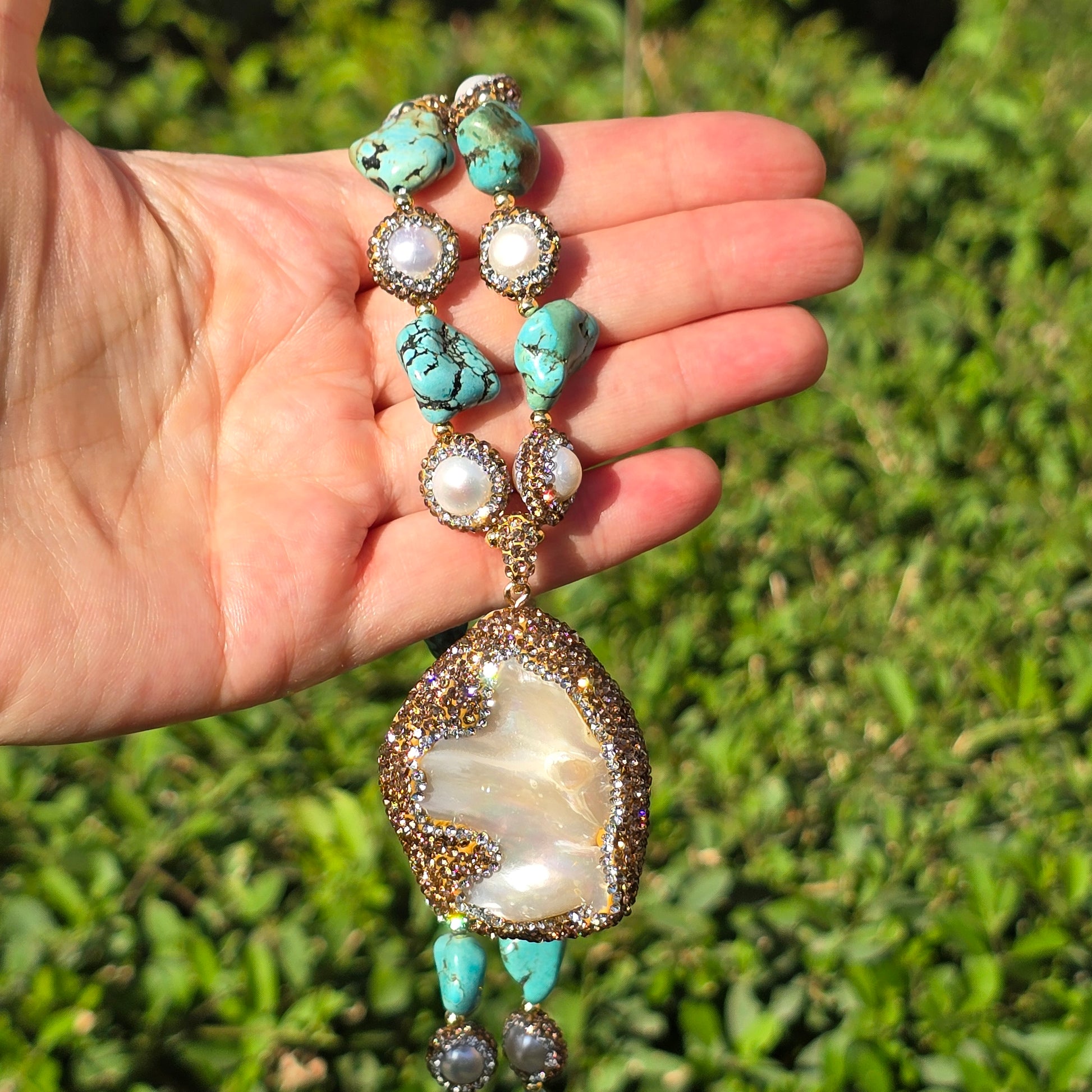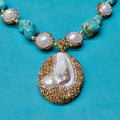 Unique Necklace with Baroque Pearl Pendant, Turquoise Beads, and Freshwater Pearls