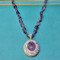 💜 A Large, Oval Amethyst Centerpiece – A deep, rich purple gem that symbolizes serenity and strength.