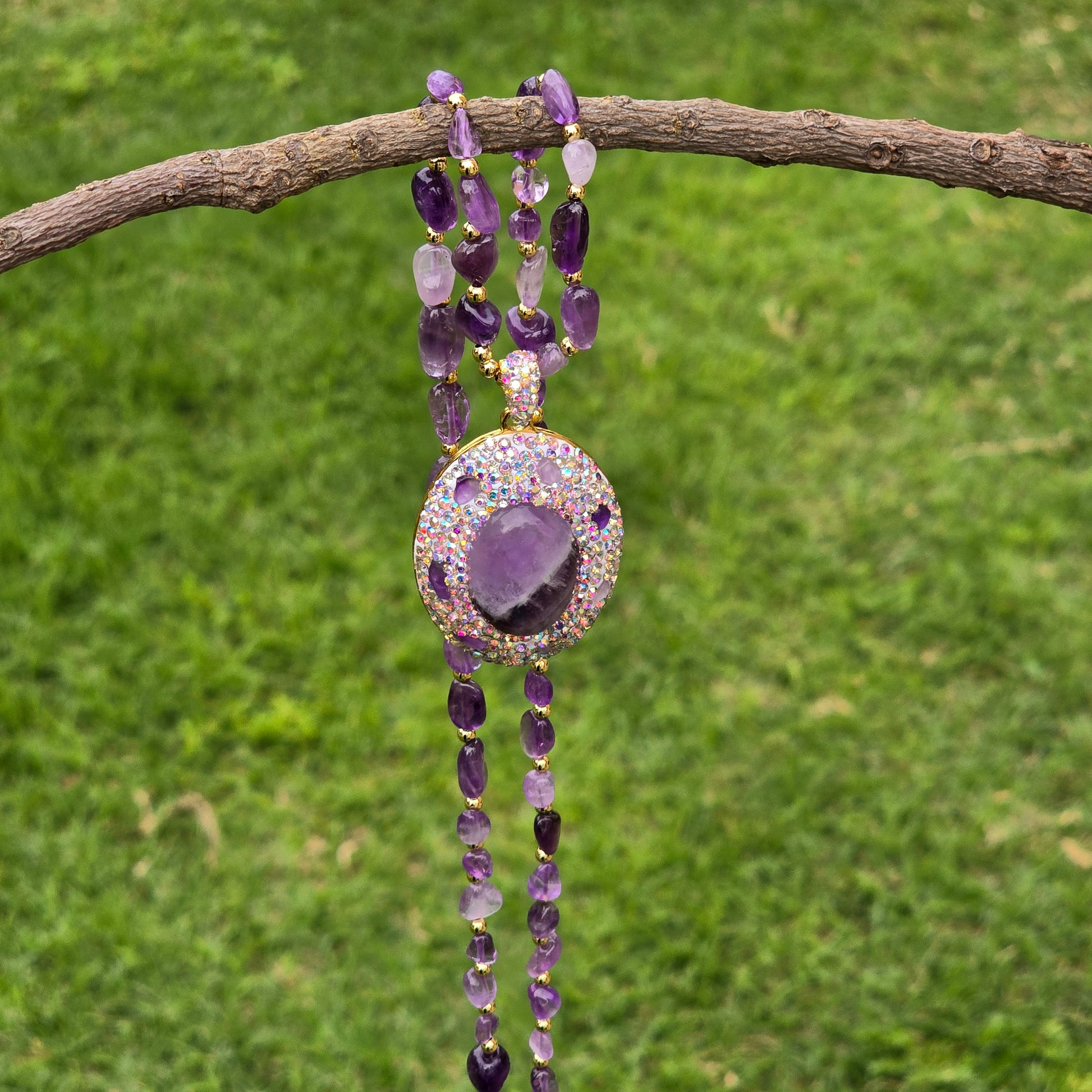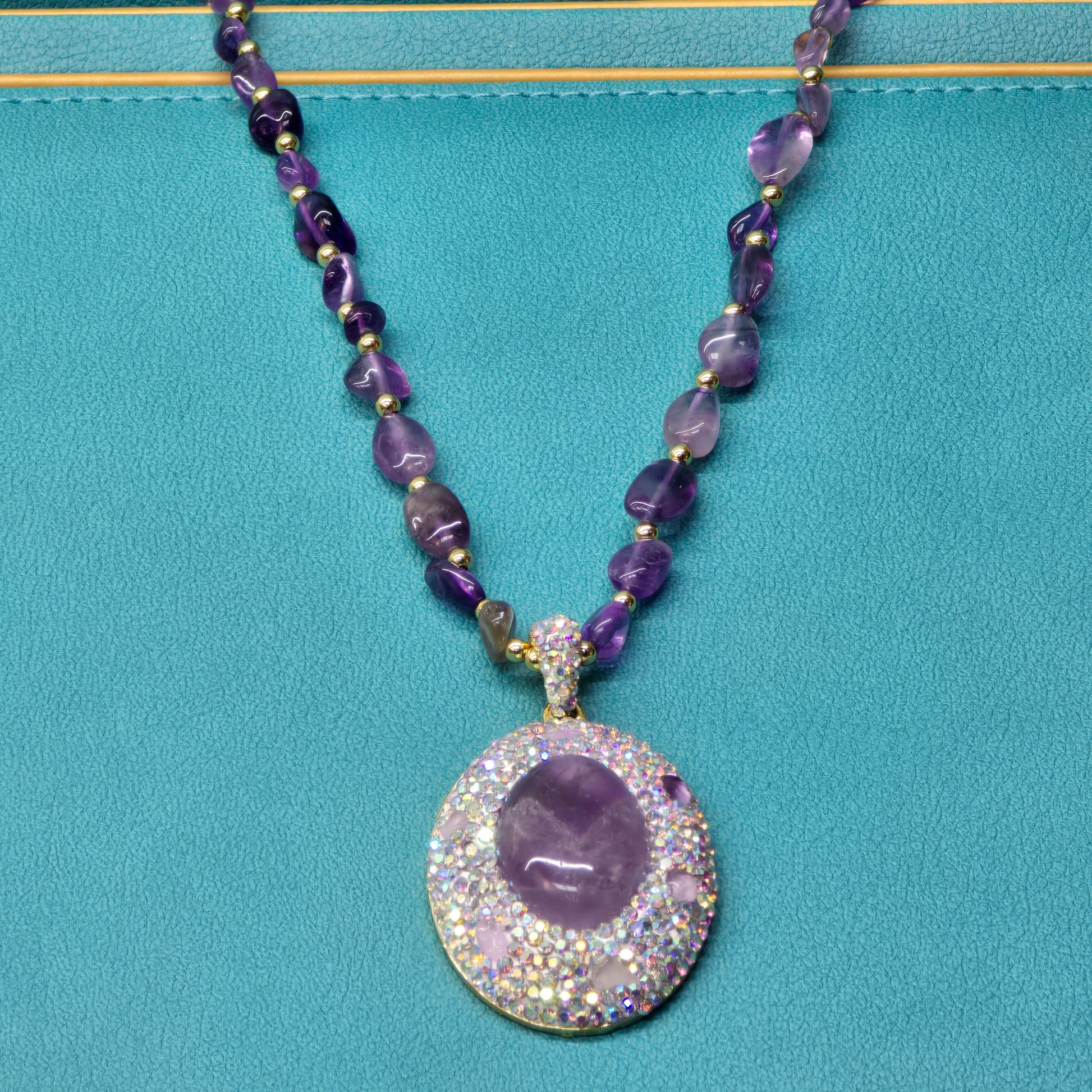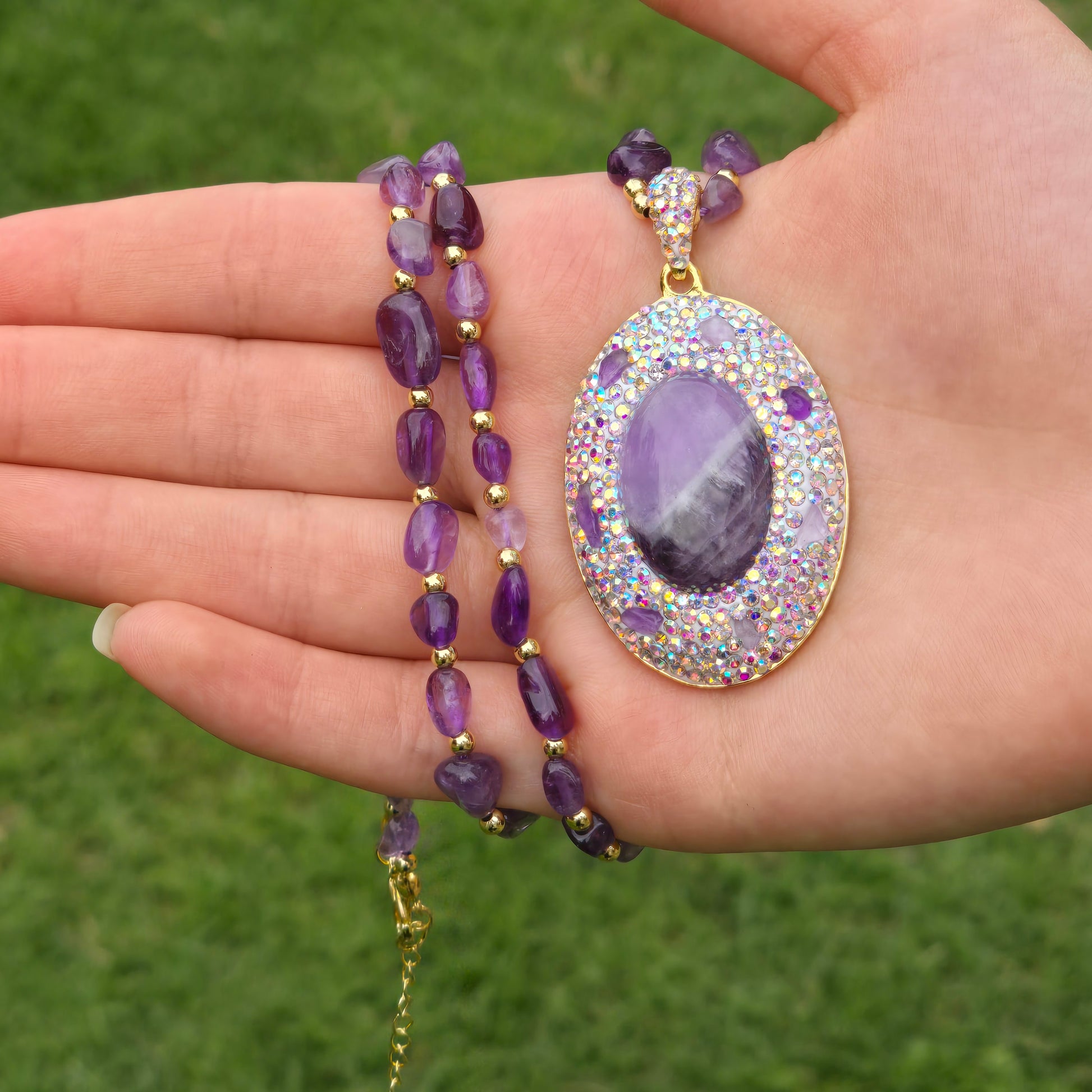 ✨ Dazzling Austrian AB Crystals – Surrounding the amethyst with a brilliant, light-catching shimmer.