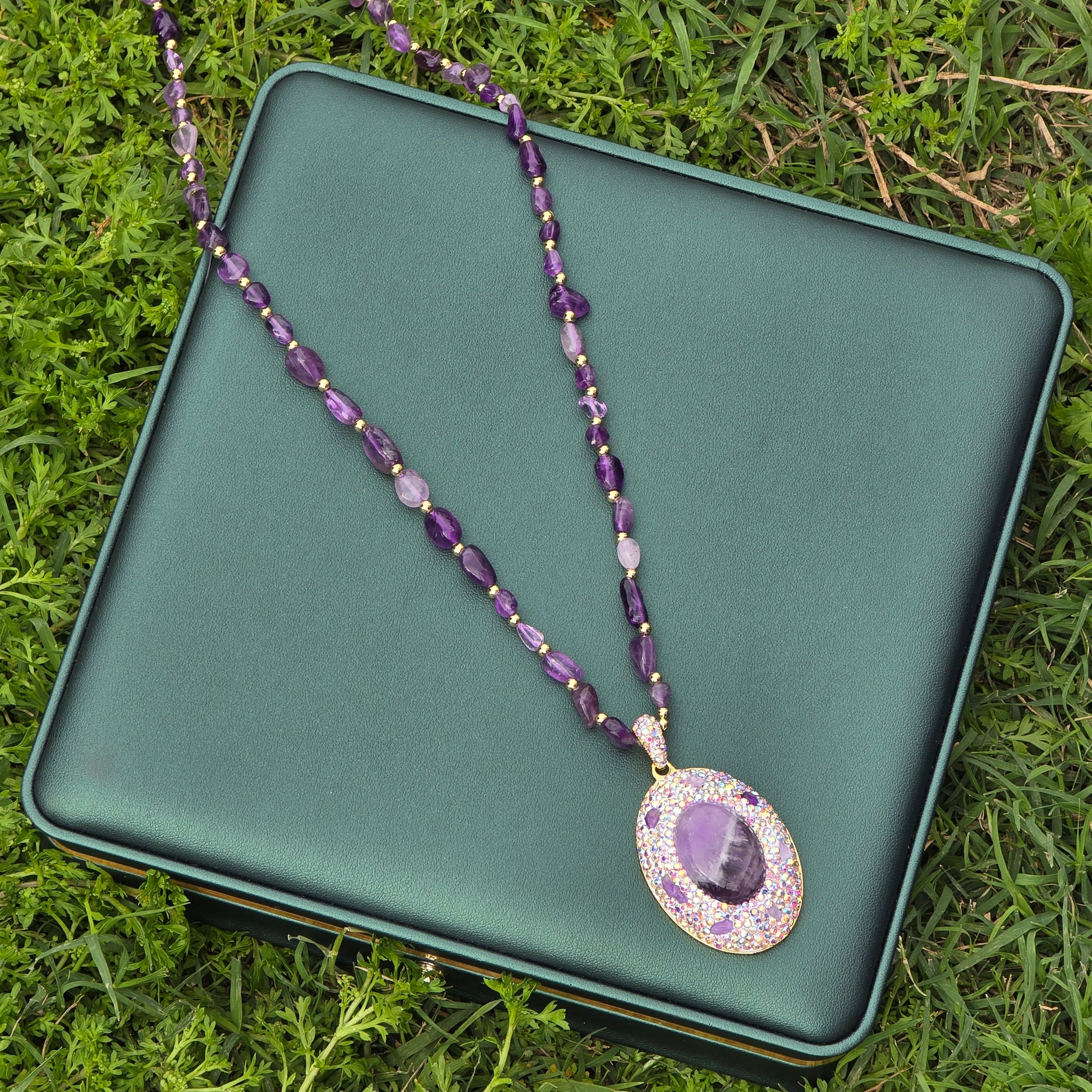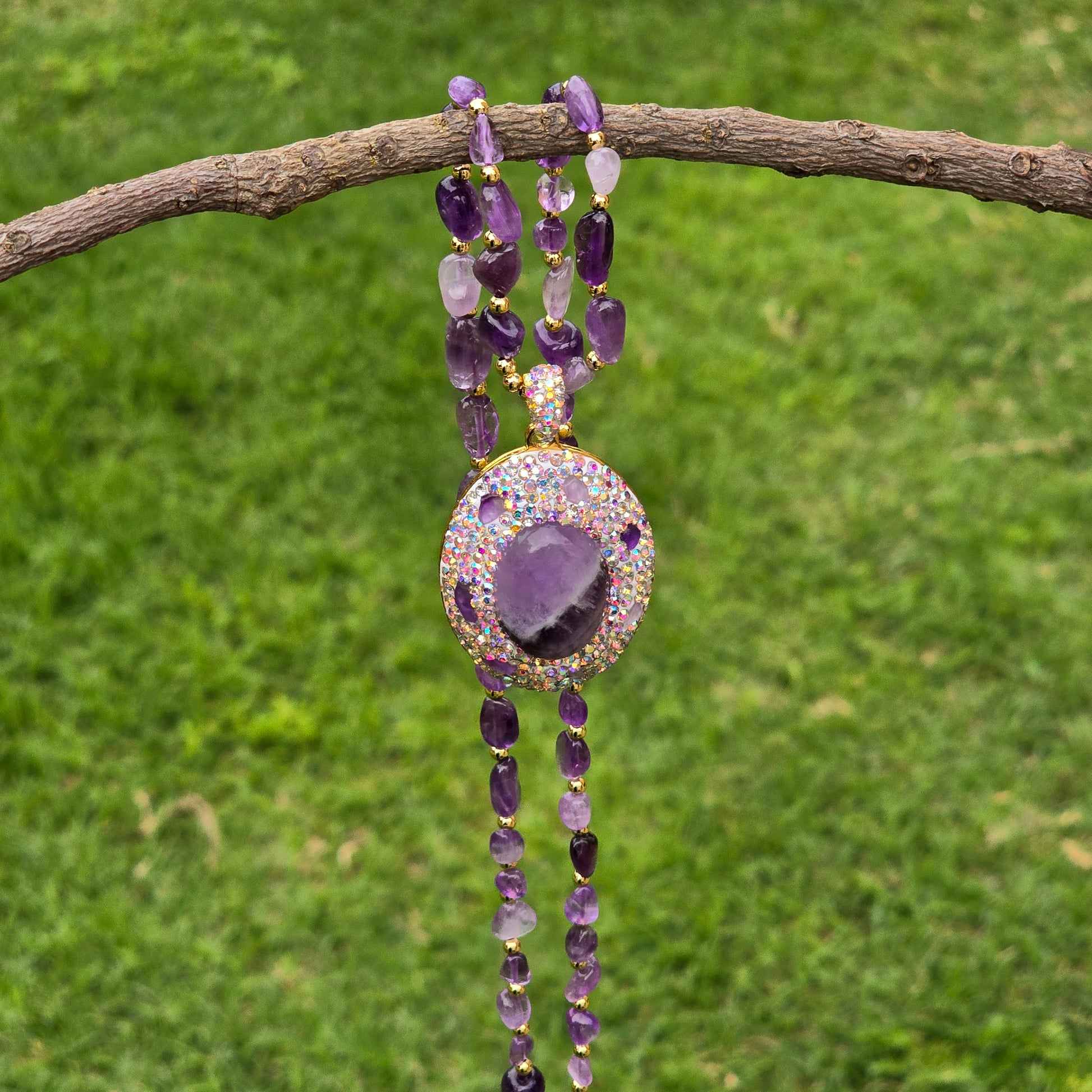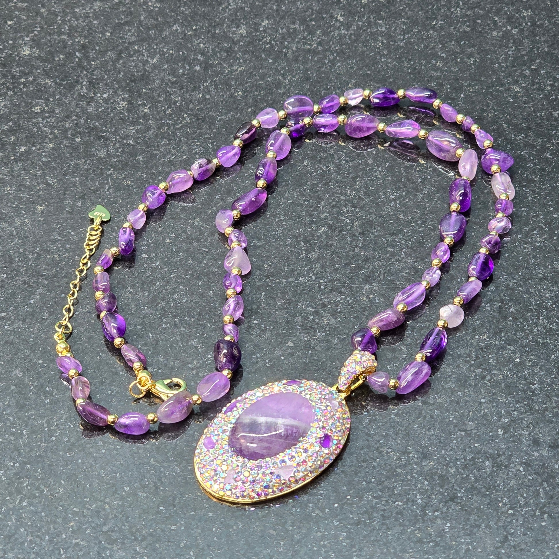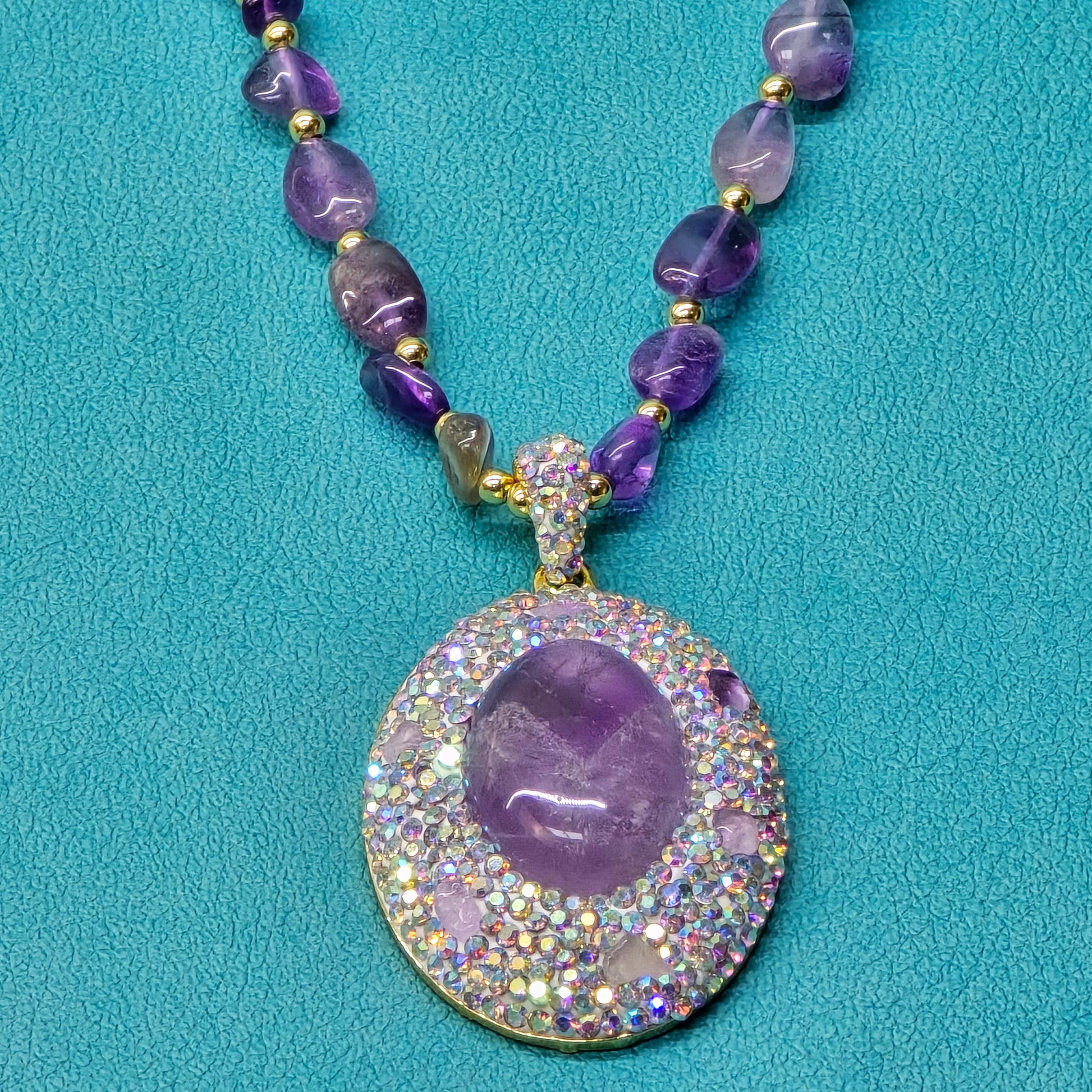 ✨ Dazzling Austrian AB Crystals – Surrounding the amethyst with a brilliant, light-catching shimmer.