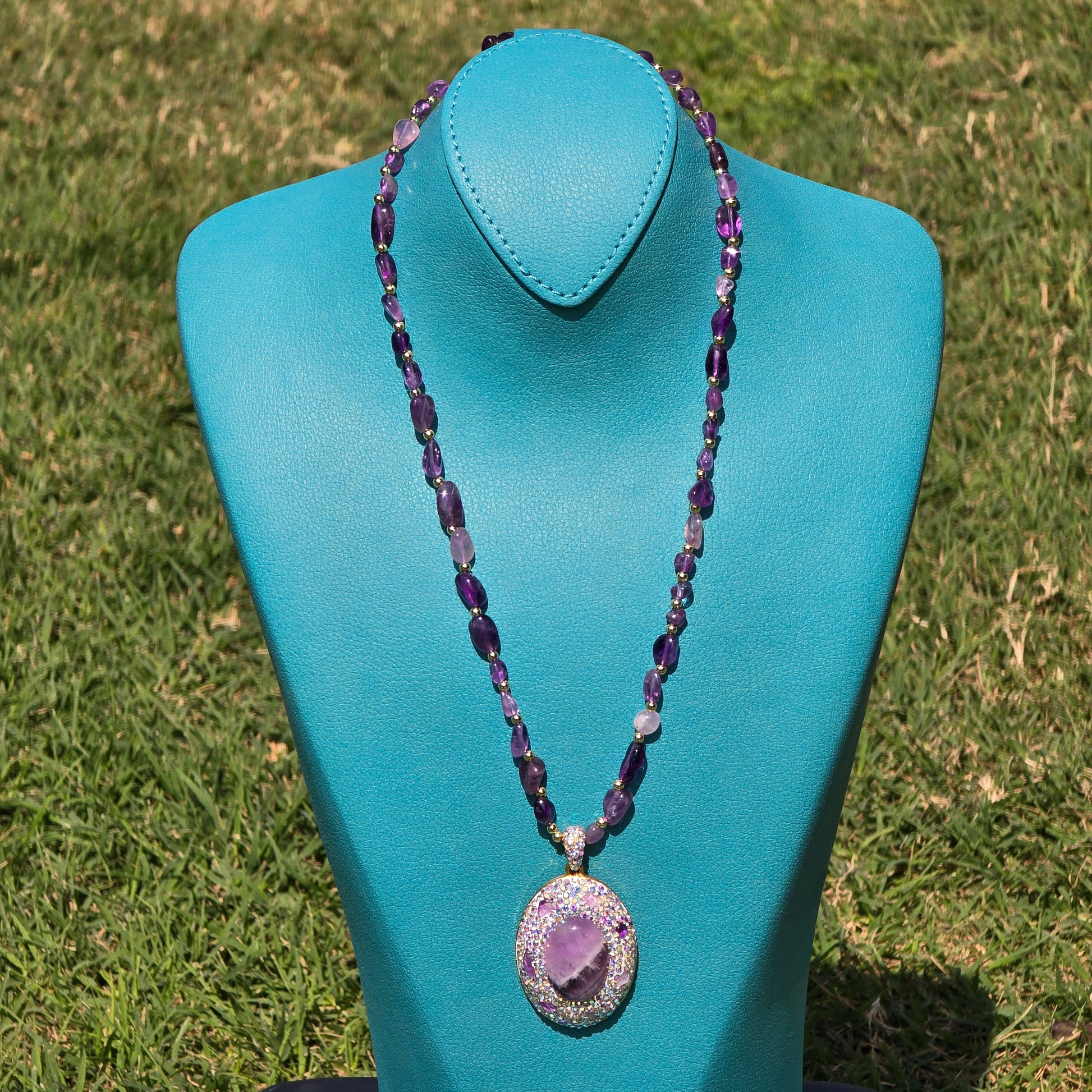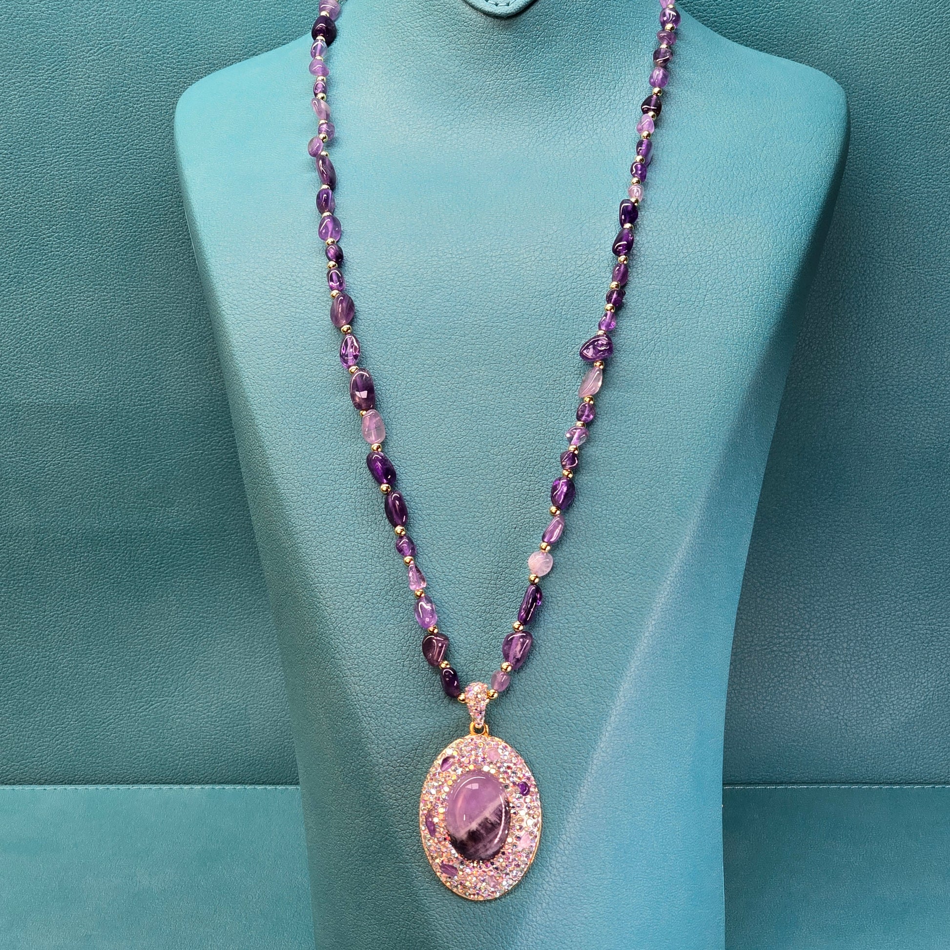Embrace the mystical allure of amethyst with this breathtaking long necklace, designed for those who appreciate the raw beauty of nature and timeless elegance. Crafted from natural-shaped amethyst stones, each bead carries a unique organic charm, forming a delicate yet bold strand that radiates sophistication.