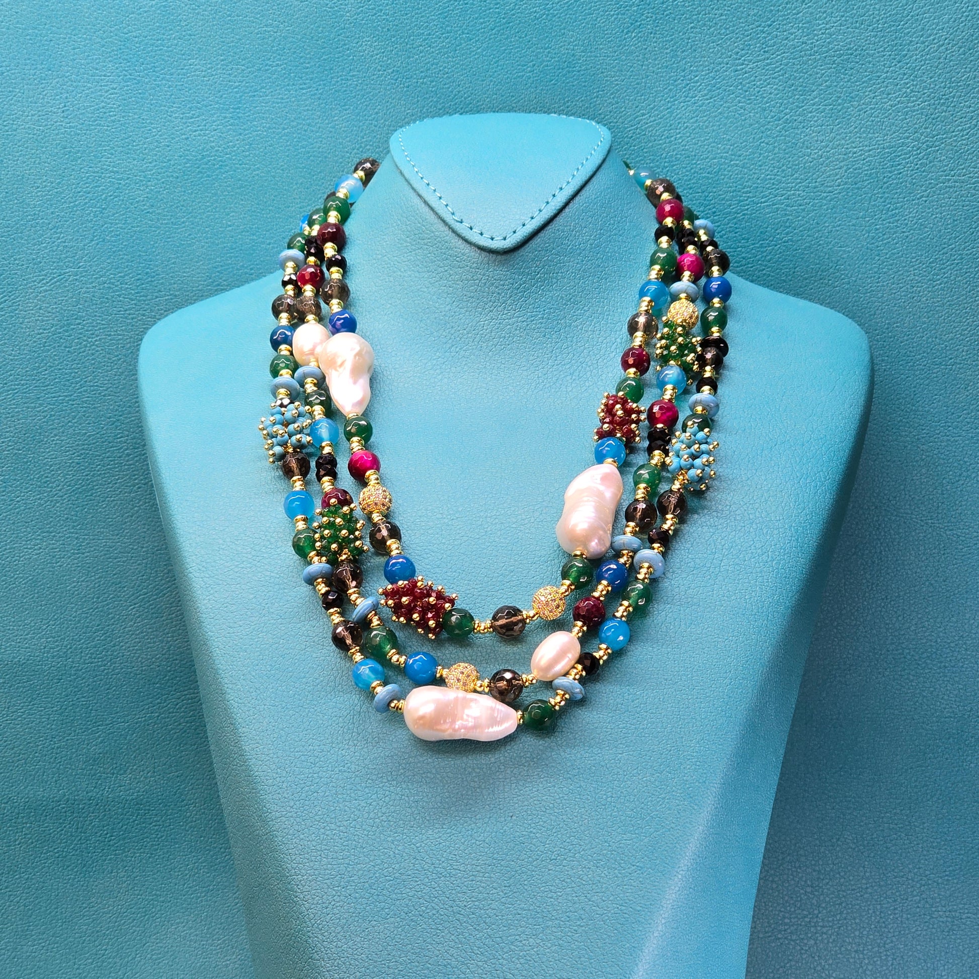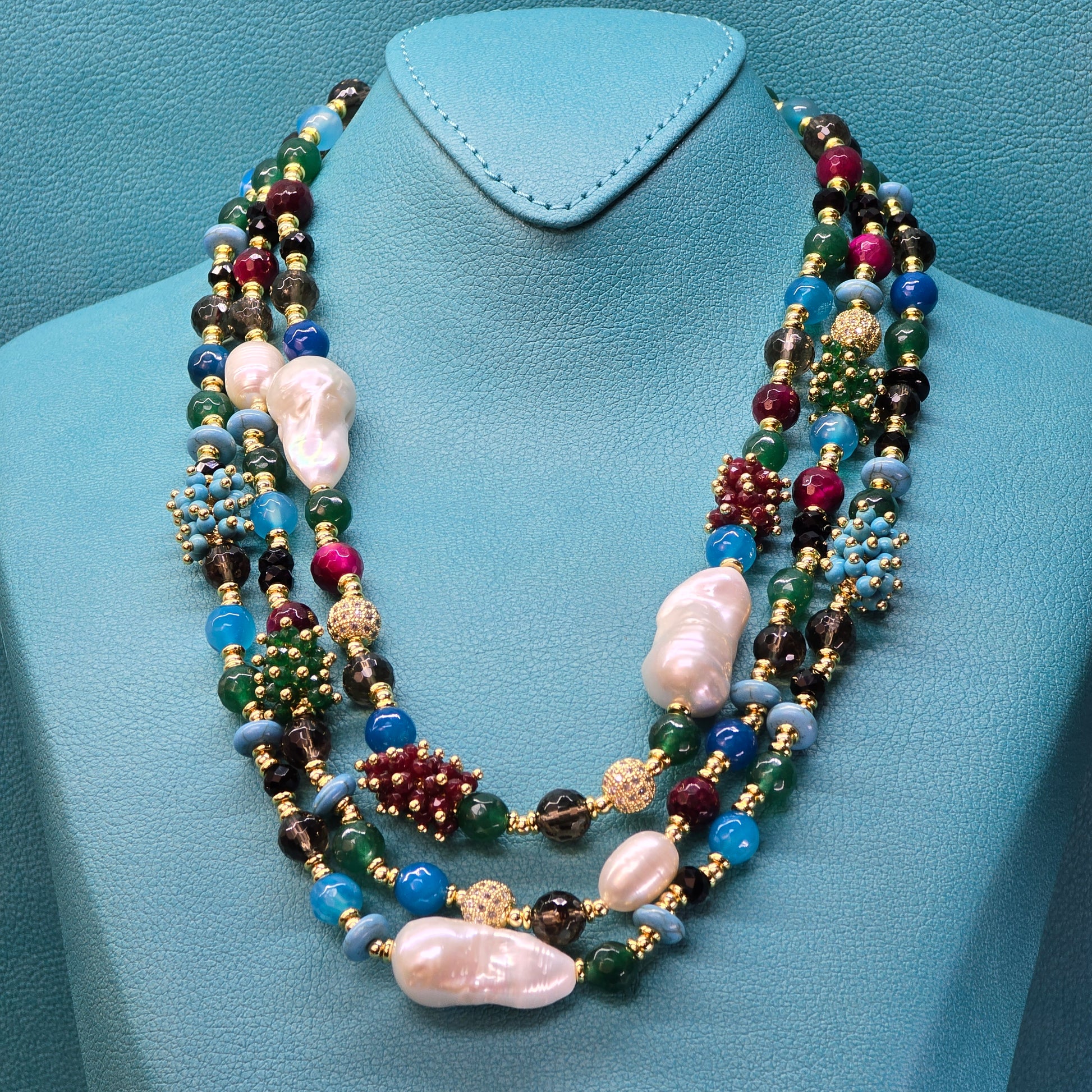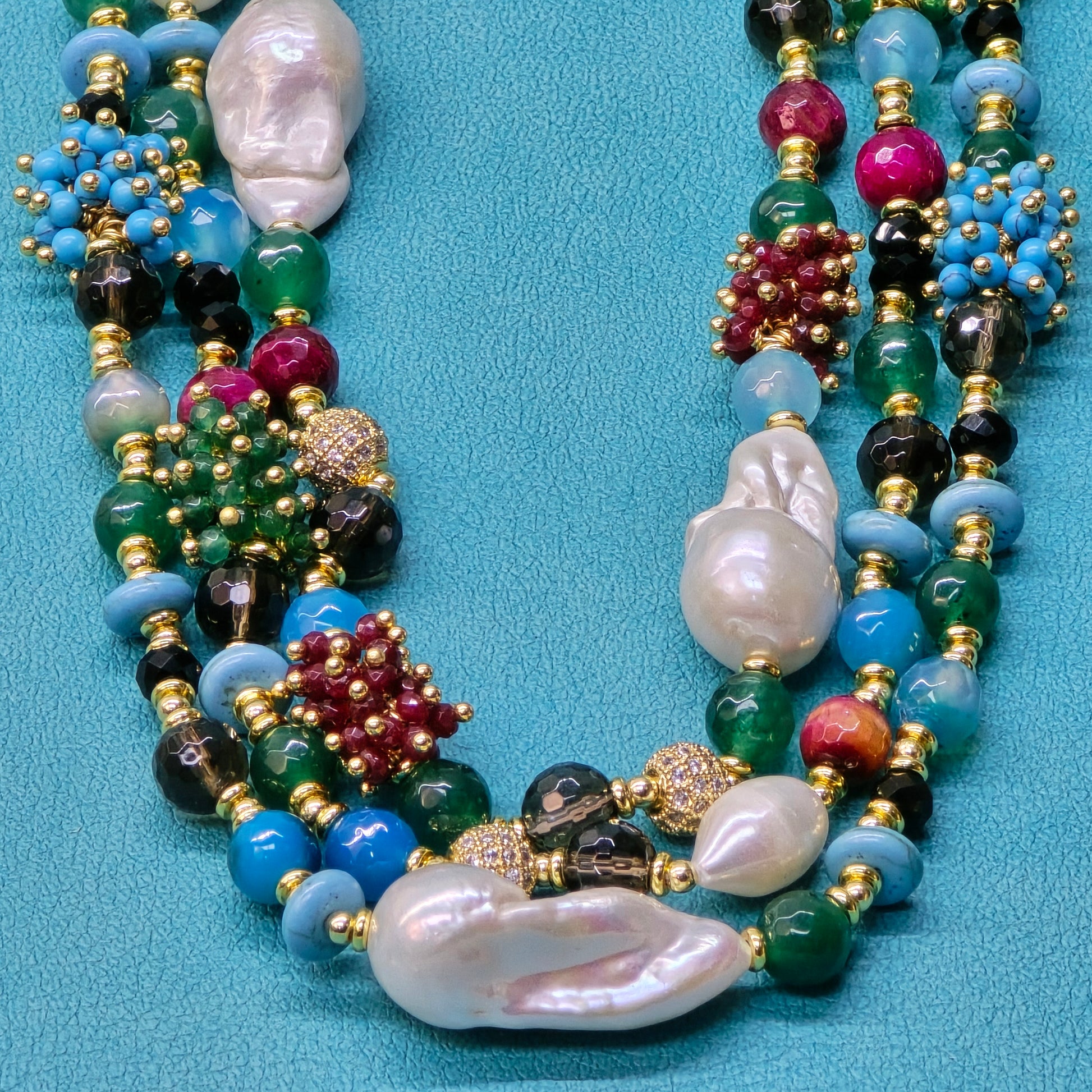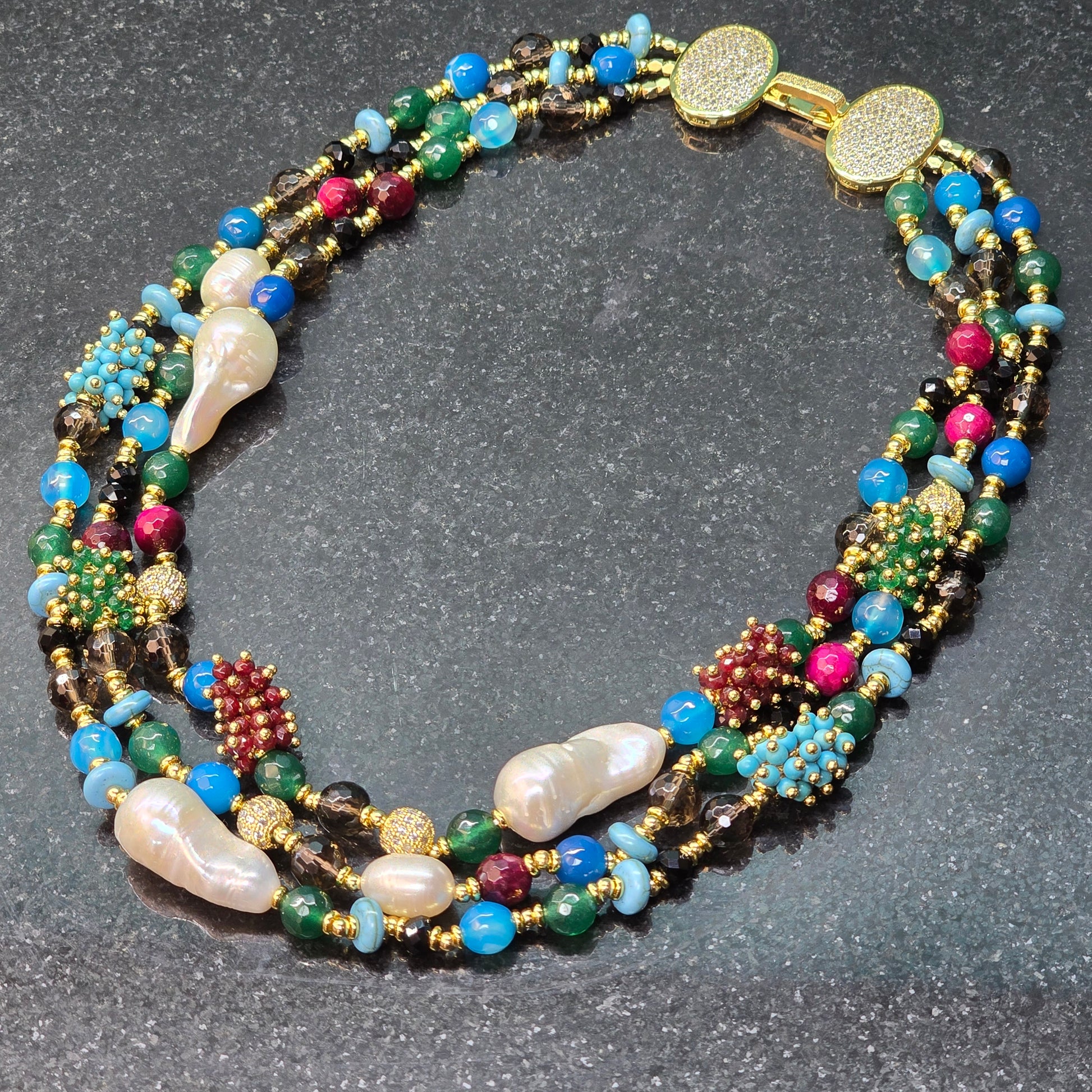 ✨ Lustrous Large Baroque & Oval White Pearls – Elevating the necklace with timeless sophistication.