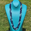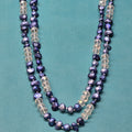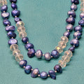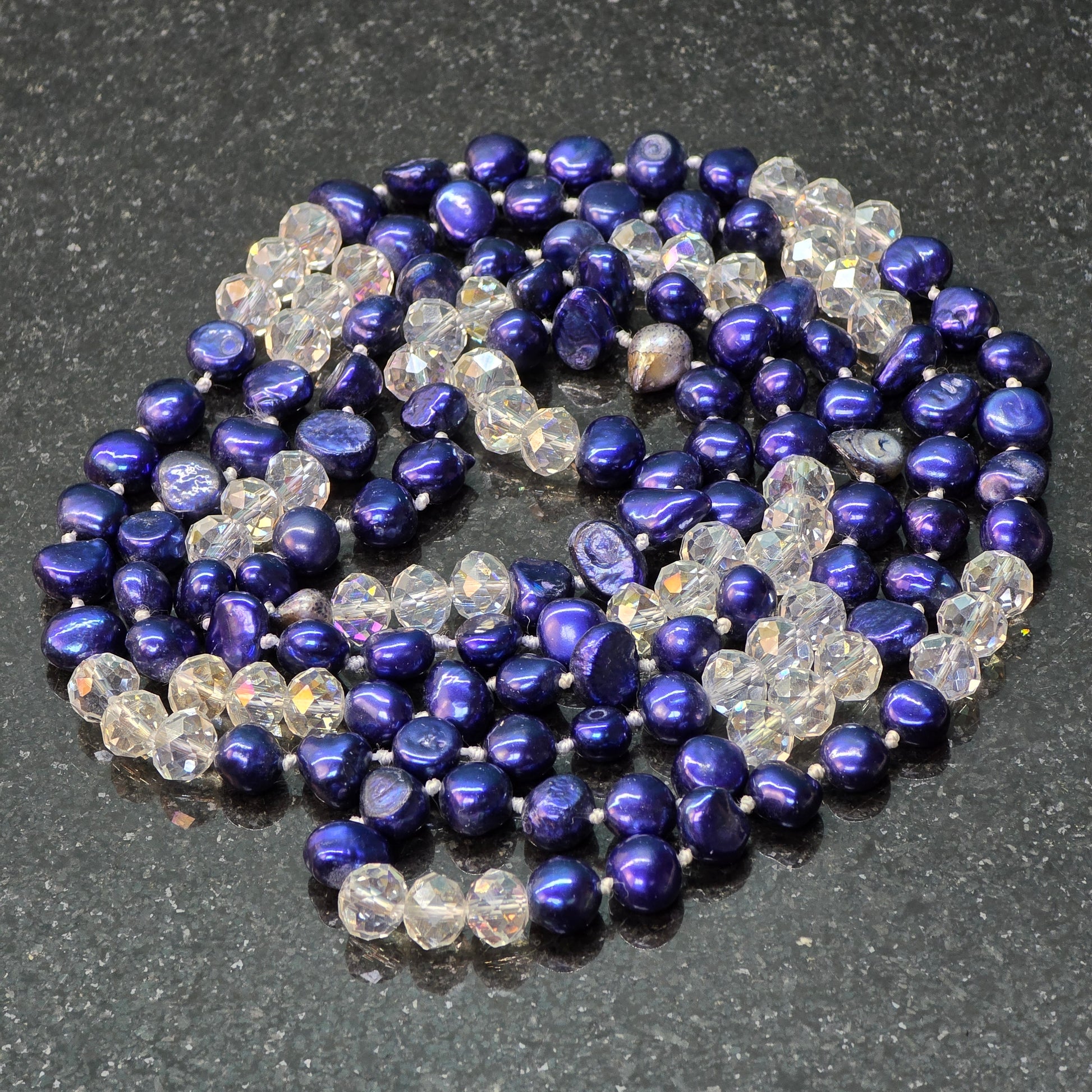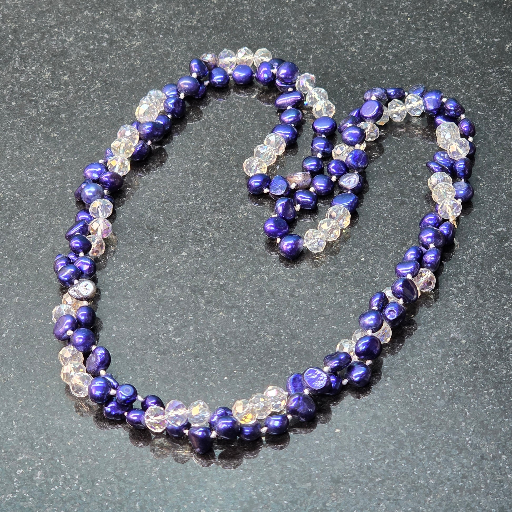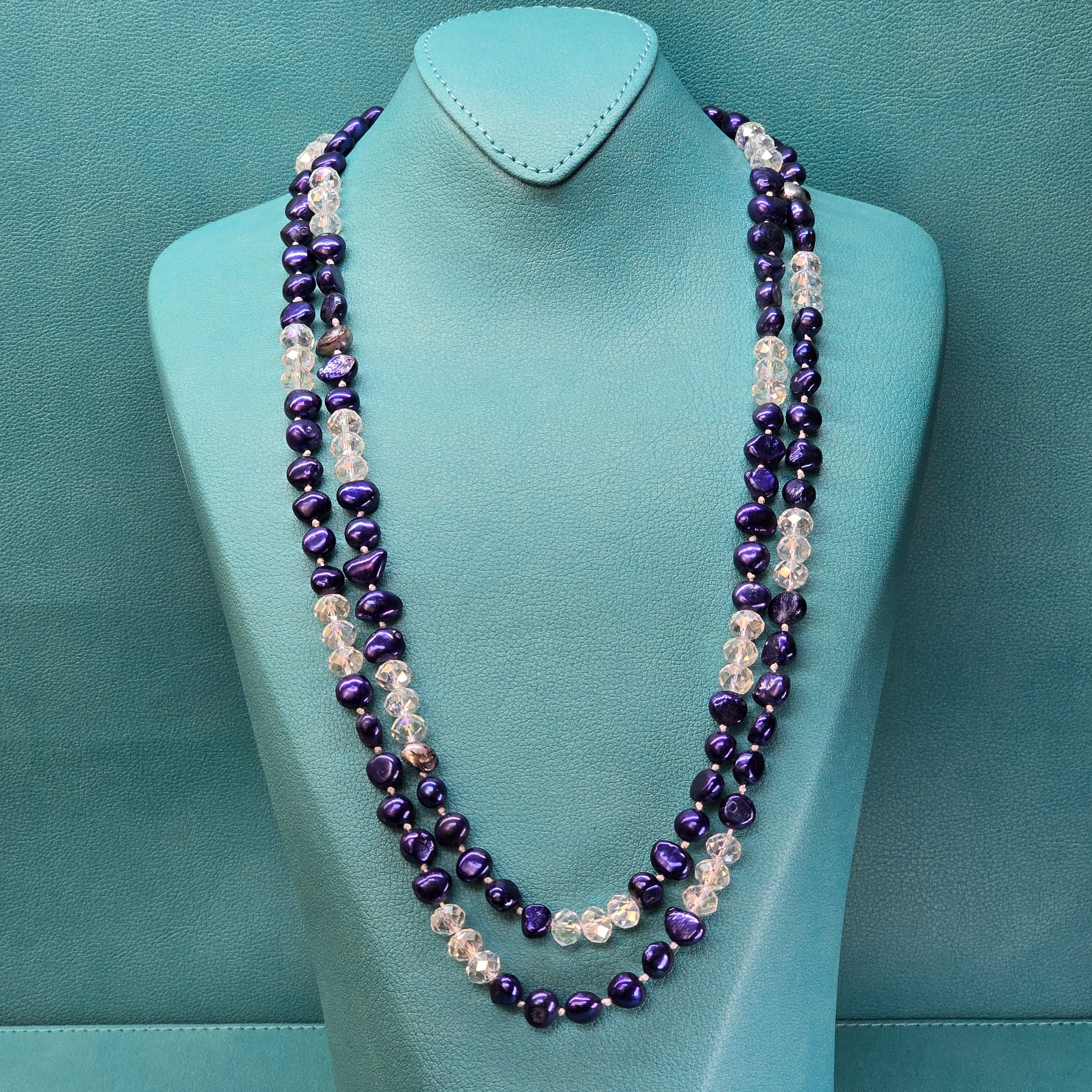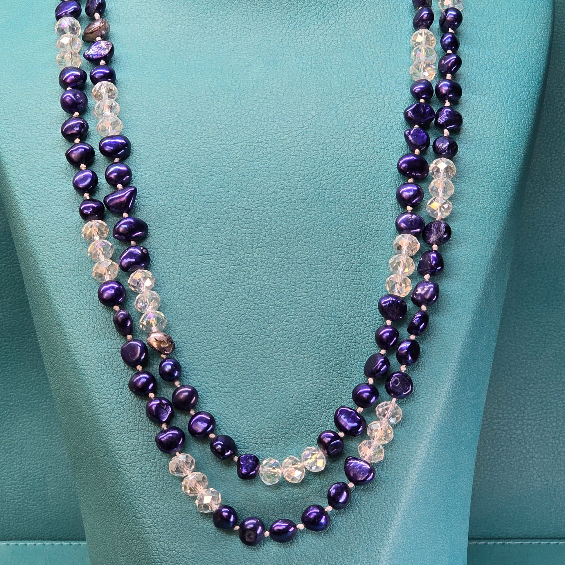 A stunning fusion of unique irregular-shaped indigo blue freshwater pearls and radiant faceted Austrian crystals. This versatile piece effortlessly captures the light, reflecting a brilliant glow that enhances any outfit.