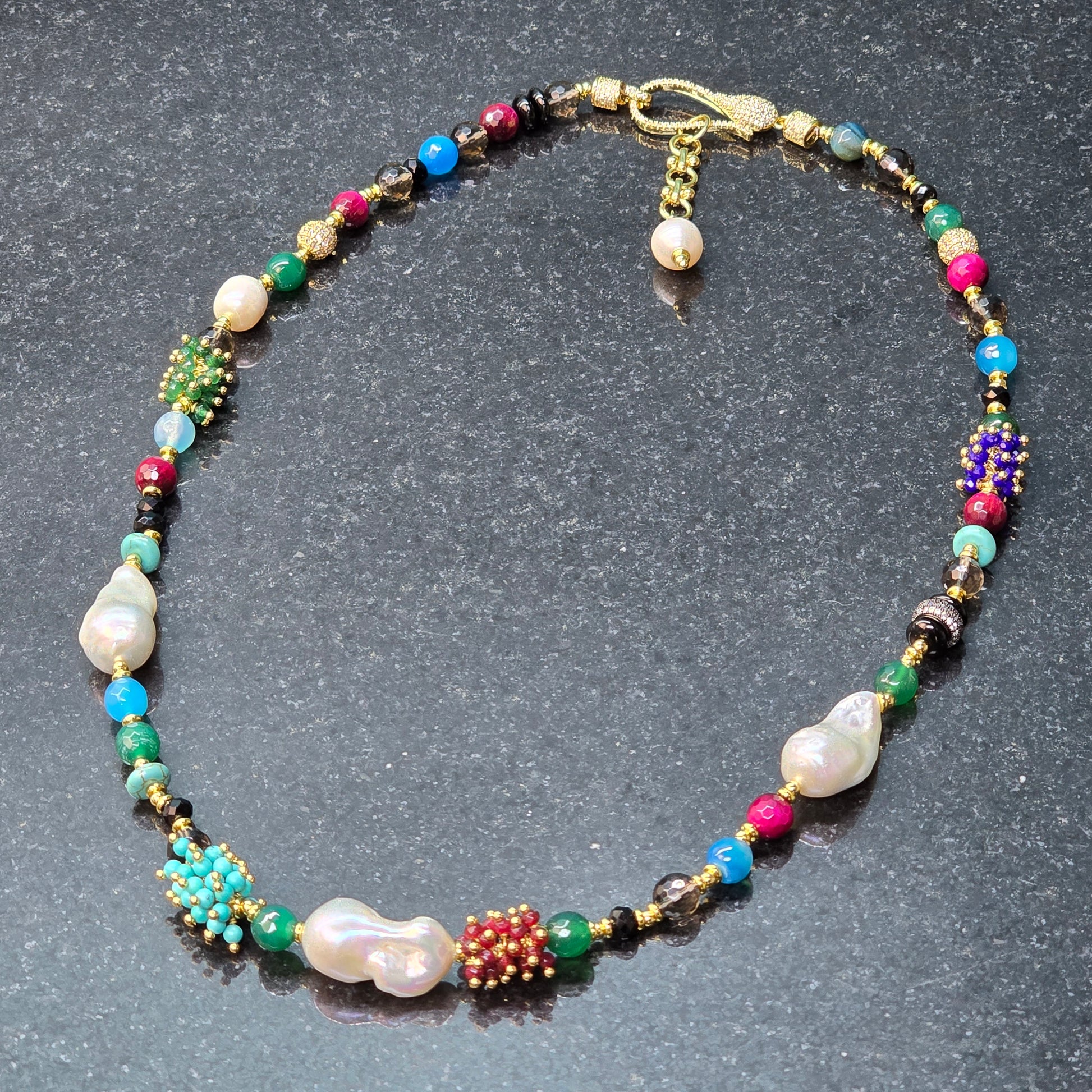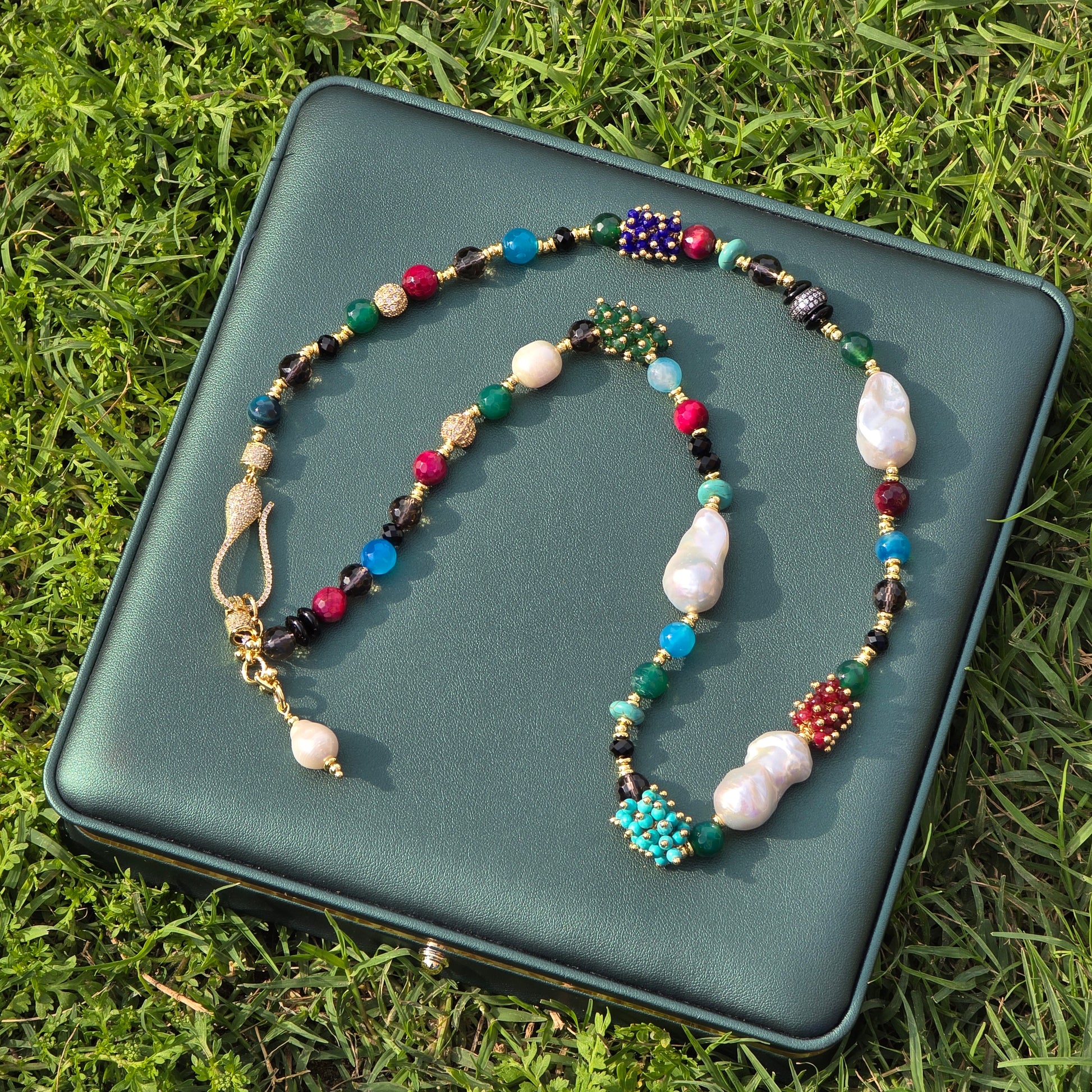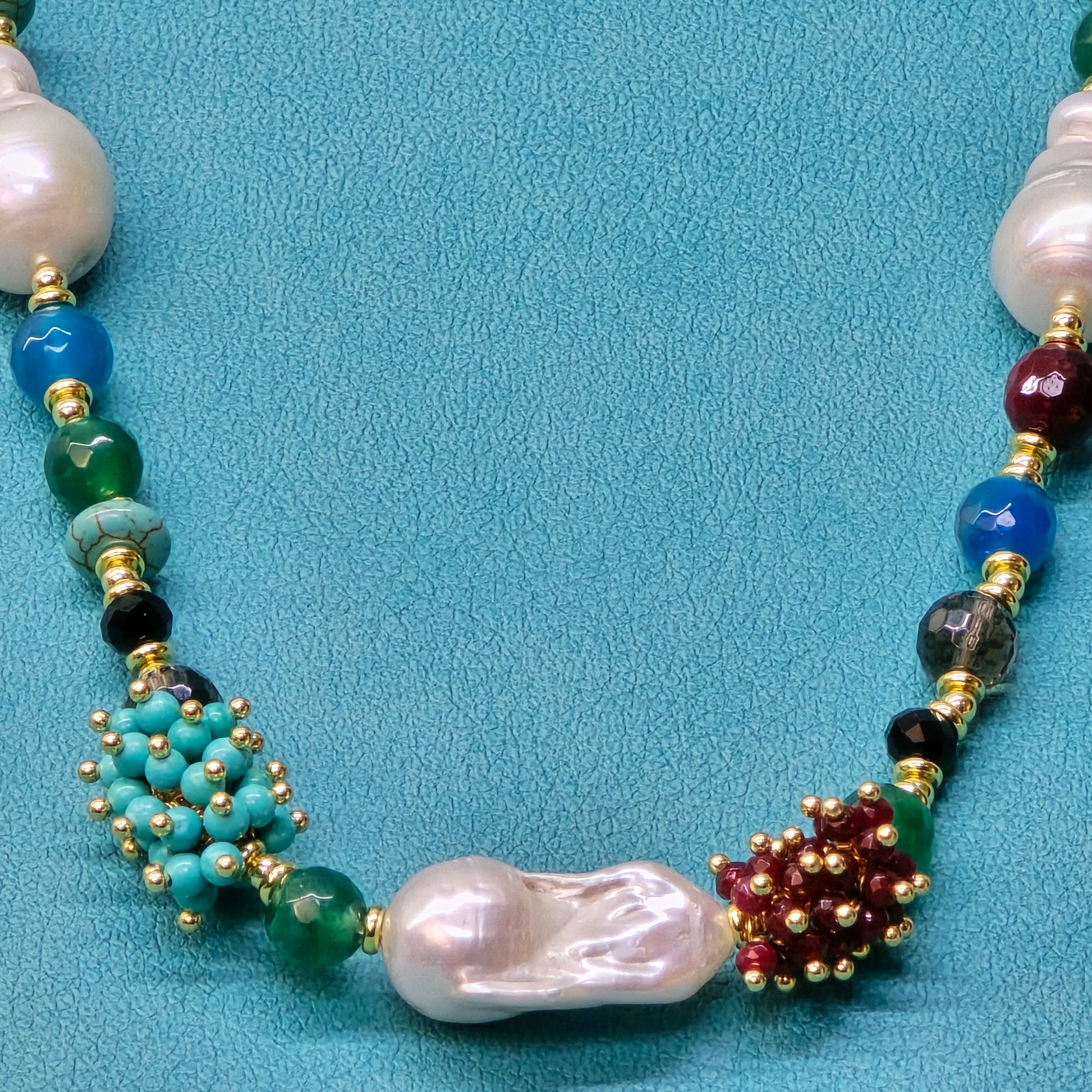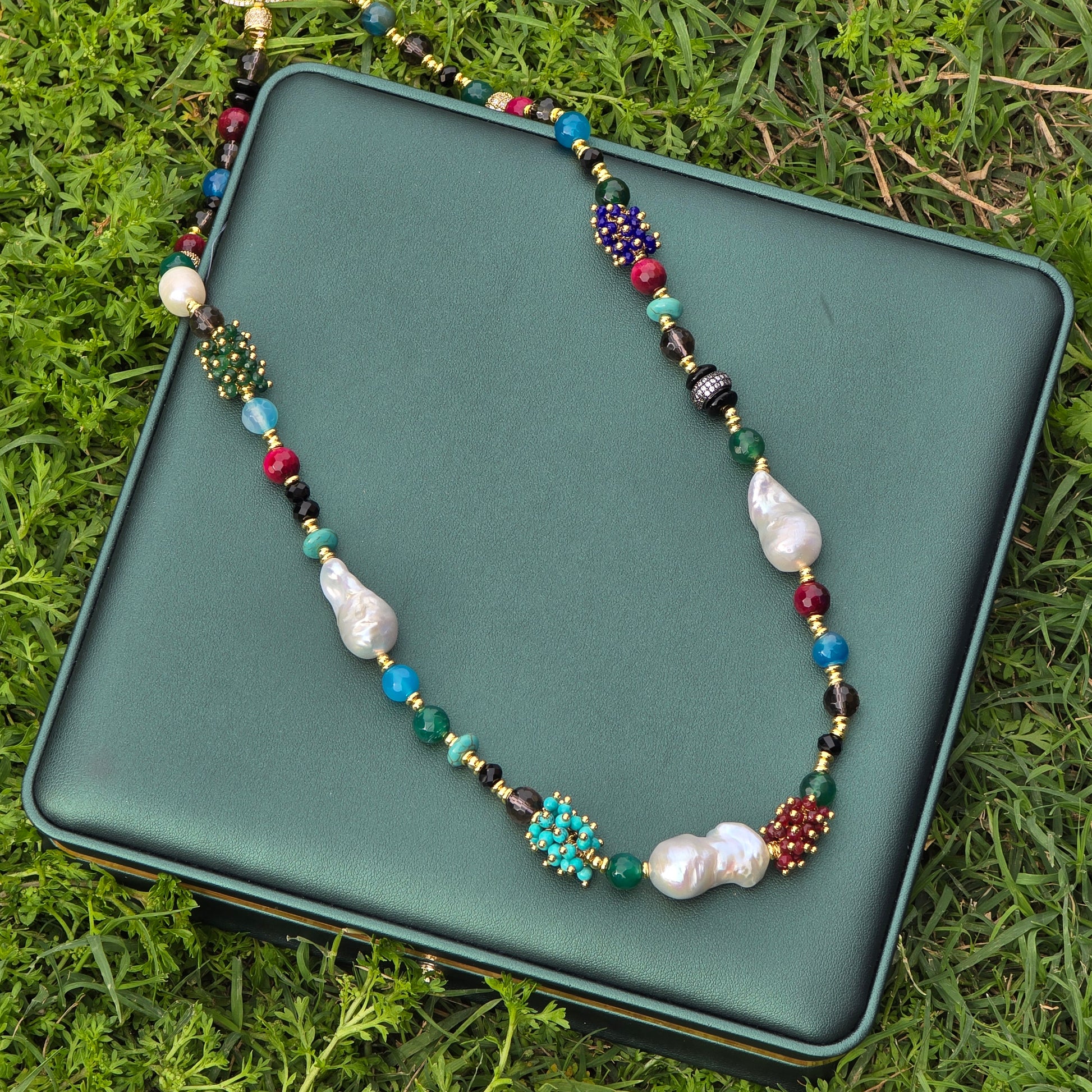 ✨ Lustrous Baroque & Oval White Pearls – Elevating the piece with a touch of timeless elegance.