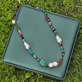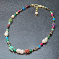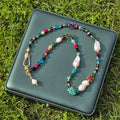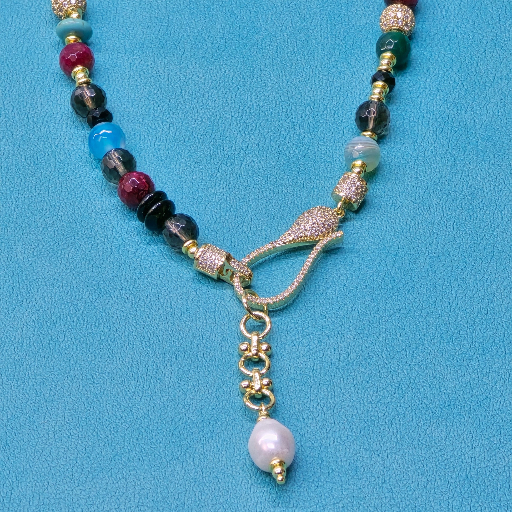 Immerse yourself in the vibrant beauty of Mexico with this elegant yet bohemian long necklace. A stunning composition of natural stones, crystals, and pearls, this piece is designed for those who love jewelry that tells a story. The rich colors and intricate detailing reflect the warmth, passion, and artistry of traditional craftsmanship, making it a true statement of refined boho-chic.