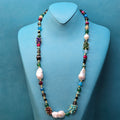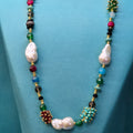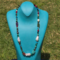 Whether paired with a flowing dress or a chic blouse, this one-of-a-kind long necklace will add effortless elegance and worldly charm to your look. Let it be your go-to accessory for a touch of bohemian luxury in any setting.