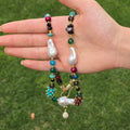 ✨ Grape-Inspired Beaded Clusters – A delicate mix of Red Ruby, Green Aventurine, Turquoise, and Royal Blue Crystals, artfully arranged for a unique, organic look.