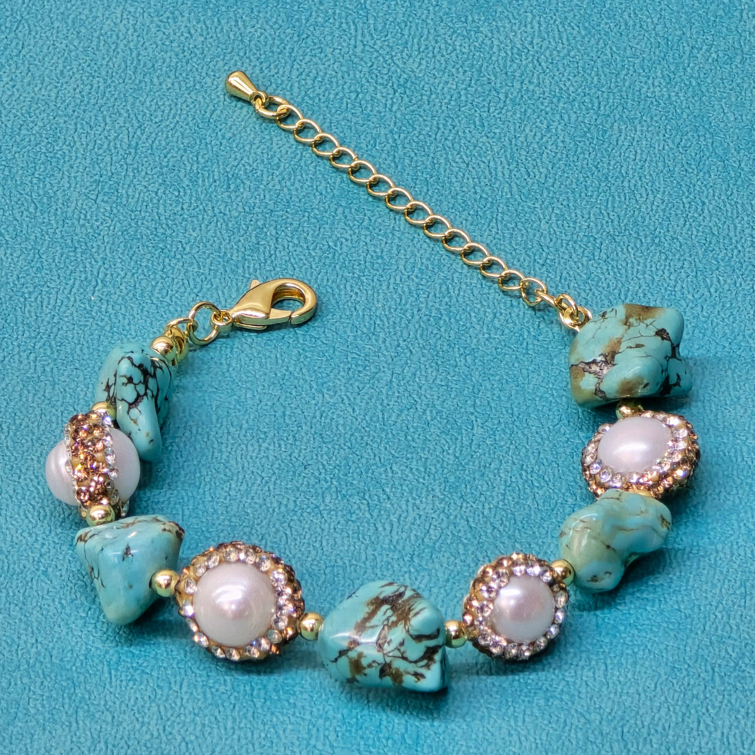 Элегантный браслет с бирюзой, пресноводным жемчугом и австрийскими микрокристаллами