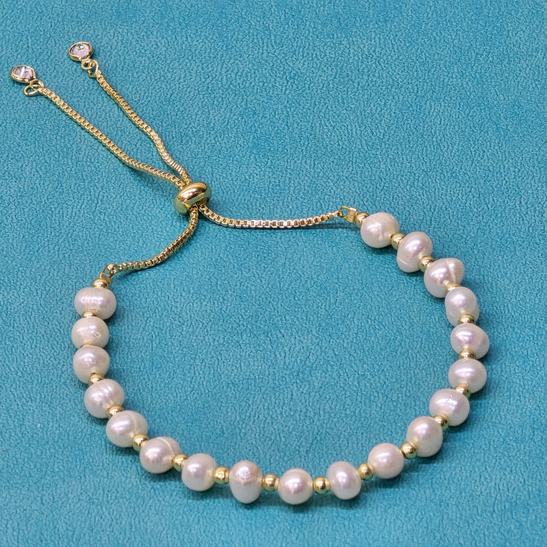 Регулируемый браслет из белого жемчуга с круглыми хрустальными подвесками